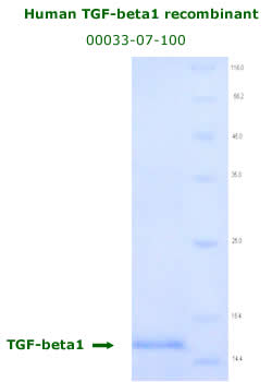 Human TGF-beta1 recombinant 00033-07-100 indicated biology activity on cell cultures.